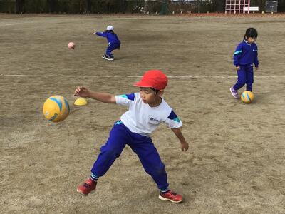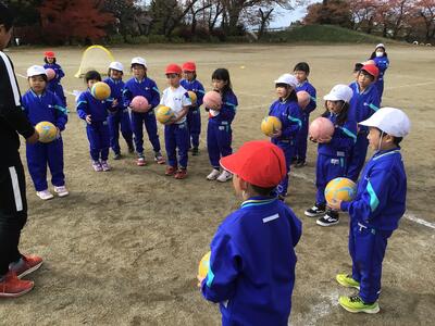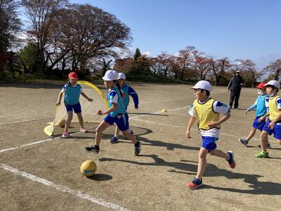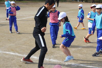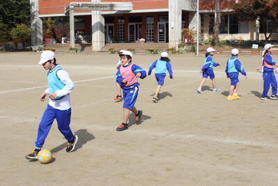 今日は1,2年生が「JFAキッズプログラム」のサッカー教室を行いました