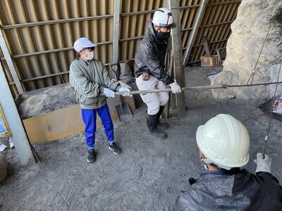 4年生が森林環境学習で、新湯川の木炭庵広場にて、炭焼き体験を行いました