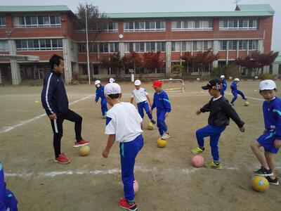 会津サッカー協会の講師の先生に、楽しくサッカーのおもしろさを教えていただきました