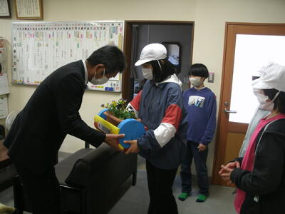 2022年11月10日 16時00分6年生が「森林環境学習」で作ったプランターに「人権の花活動」で植えた花を入れ、普段お世話になっている事業所へ届けに行きました地域の方々との交流活動により、子どもたちの心も温かくなりました