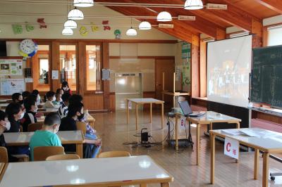今年度も3~6年生による合奏を行います。まずは、昨年度の合奏をDVDで鑑賞しました。4~6年生は懐かしい気持ちで、3年生は憧れと期待の気持ちで鑑賞していました。