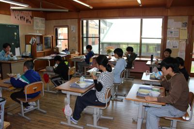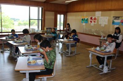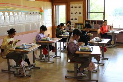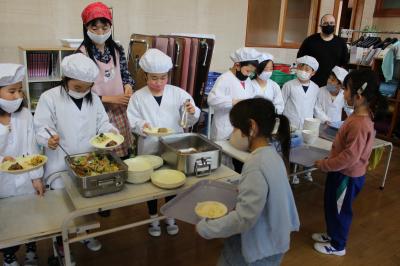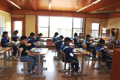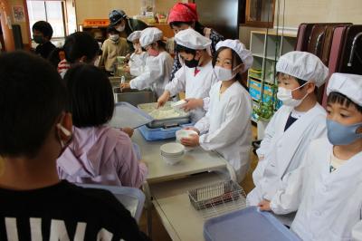 4月は6年生にお手伝いしてもらっていた1・2年生も、自分たちだけでの給食当番にチャレンジしています。一人分の量を考えて、配食するのはちょっと難しいけれど、日に日に上手になっています。一人一人が自分の仕事を頑張っています!