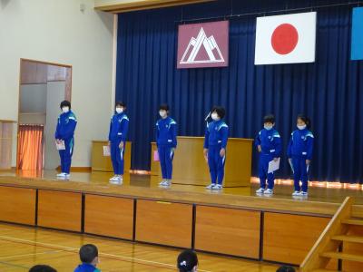 「学習や運動に関するめあて」「学校生活や自分自身の生活にかんするめあて」そして、「高学年としての自覚」を感じさせるめあてと、とても充実した内容で、全校生から大きな拍手が送られました。
