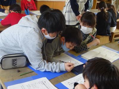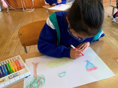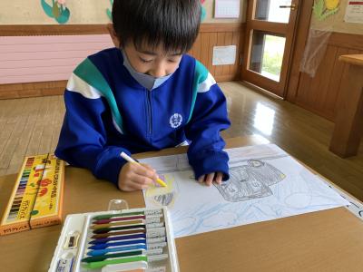 「これは、お父さんが乗ってる消防車だよ!」と、嬉しそうな表情で大好きな乗り物を描く児童も。