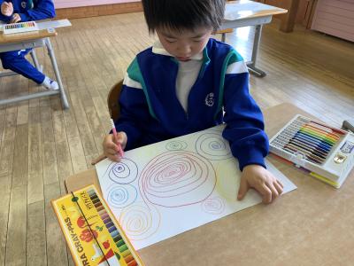 「好きなものって何だろう?」と悩みながら、好きな形や模様を描く児童も。
