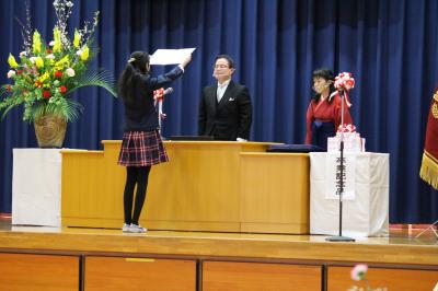 校長先生から卒業証書をいただいたあとに、堂々と中学校生活での抱負や決意を述べる卒業生