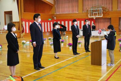 代表の5年生が修了証書を受け取り、礼をする動きに合わせて,全員が礼をします。