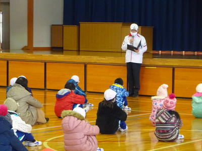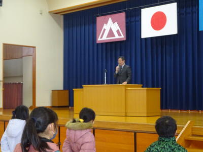 始業式では、校長先生と冬休みの「早寝・早起き・朝ごはん(朝ウンチ)」「こまめな手洗い」「交通ルールを守る」について振り返りました。