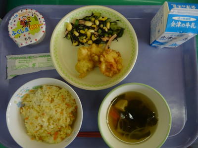 学校給食は、明治22年、山形県鶴岡市の忠愛小学校で、お弁当を持ってくることのできない児童のために、おにぎりと漬け物を出したのが始まりです。戦争が終わって昭和21年12月24日に給食が始まり、この日が『給食記念日』となりました。1ヶ月後の1月24日~30日までを『全国学校給食週間』とよんでいます。