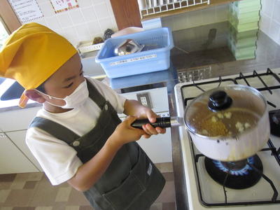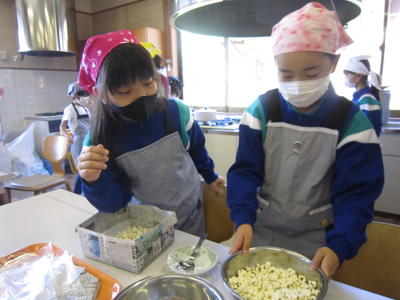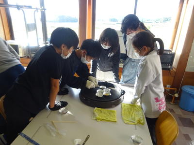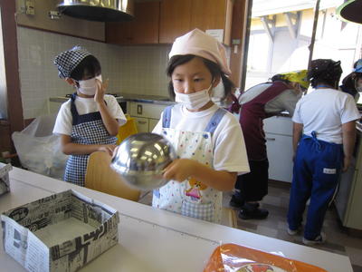 作っている最中、蓋が取れ、家庭科室中ポップコーンまみれになる大事件も起きましたが、「ものすご~く、おいしい」ポップコーンができました!