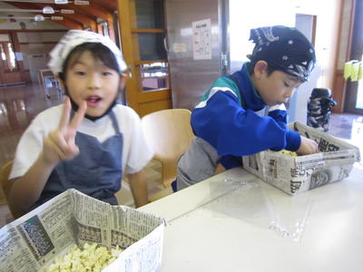 今日は、2年生が育てたトウモロコシで「ポップコーンパーティ!」です!