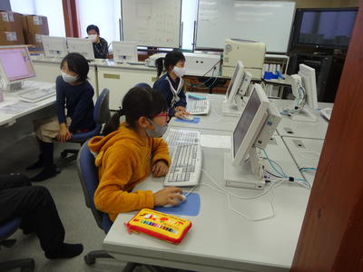 パソコン室で熱心に画面に見入っているのはパソコンクラブ。今日は何をつくっているのかな?