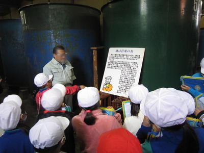 3年生と4年生が磐梯町の酒造会社「磐梯酒造」に見学に行きました。お酒になじみのない子どもたちですが、「お酒って何からつくるのかな」「お酒ってどうやってつくるのかな」と、興味津々でした。