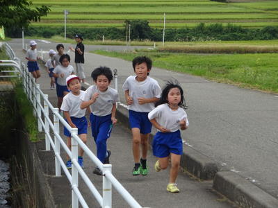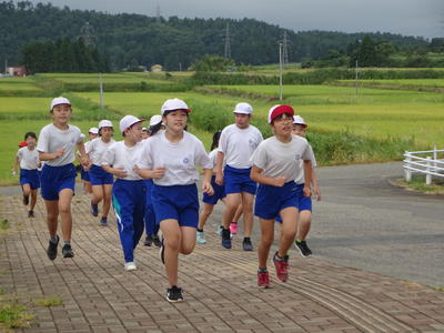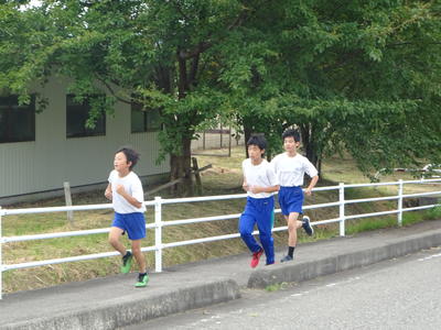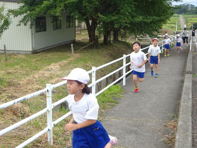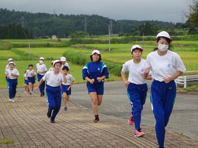 特設のマラソンコースを低学年は3周、中学年は4周、高学年は5周、走ります。
