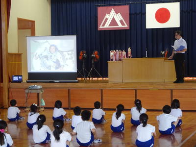 今日の全校集会では校長先生より、宇宙飛行士の若田光一さんのお話を聞きました。