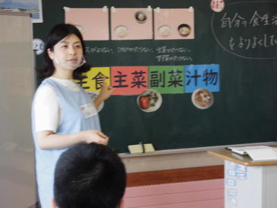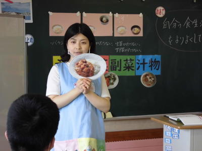 栄養教諭の鈴木先生を講師に、バランスのとれた食事について考えました。