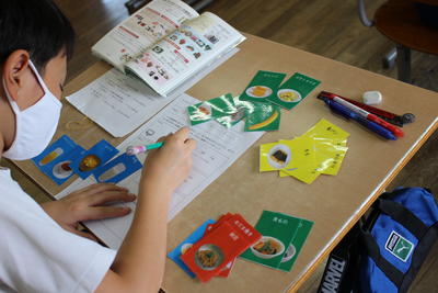 しっかり学習した子どもたちです。お家でも、ぜひ、子どもたちに1食分の献立を考えてもらってください。