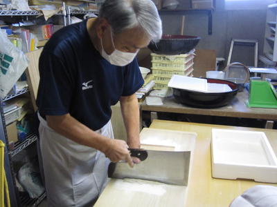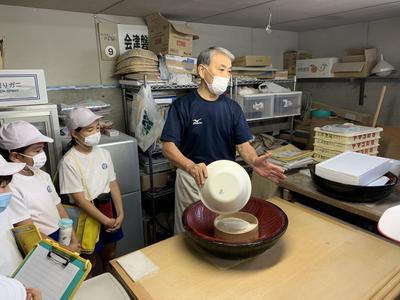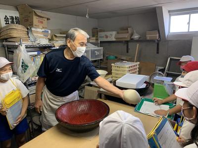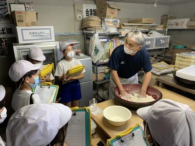 「そば粉をこねる時は、身体全体を使ってこねるんだよ。」と、長年の経験を積み重ねてきた長谷川さんにしかできない技なども見せていただき子ども達は大興奮でした。