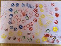「ぐるぐるスタンプするとおもしろい!」「たくさん重ねるとお花みたい!」