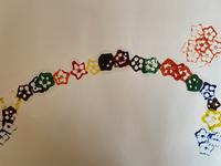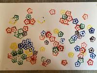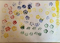 「黄色の絵の具でやるとお星様みたい!」「ならべると虹みたい!」