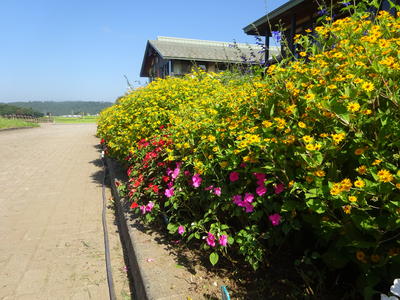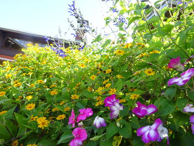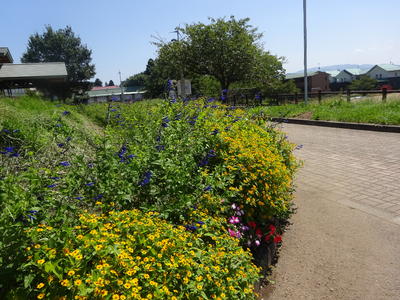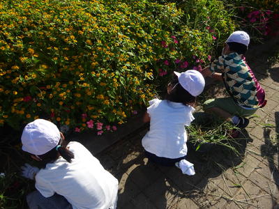 5月にみんな植えた花壇のお花。大きく育ち、きれいな花を咲かせています。