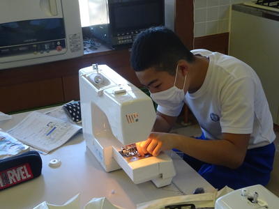 家庭科室から、カタカタ・・・とミシンの歌声が聞こえてきました・・・
