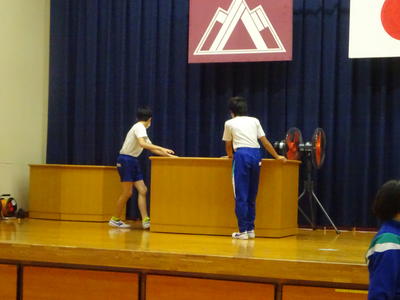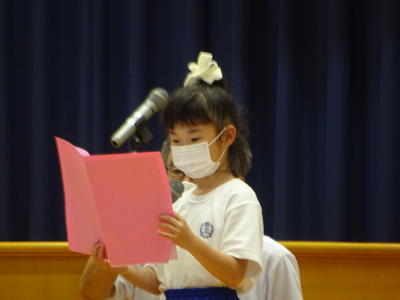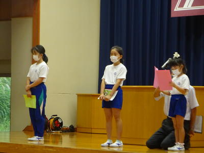 今日は、1年生、3年生、5年生の代表がめあての発表をしてくれました。1学期の生活を振り返って、頑張りたいことをしっかりと発表しました。