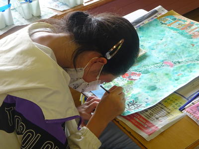 できあがったものは、先生や友だちに見てもらい、さらに手直しです!