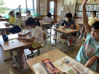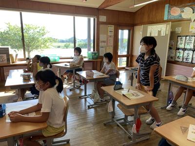 教科書のイラストをヒントにしながら、どんなことを話しているのか・・・聞き取ります。耳も目も頭もフル回転!たくさんの「分かった!」「できた!」という声が聞こえてきました。また、「英語では自信がないけど、日本語でなら・・・」という子も周りの友達に励まされながら自信をもって答えることができました。