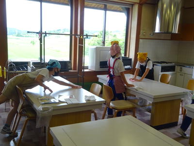 まずは、調理台を丁寧に拭くところからスタートです!