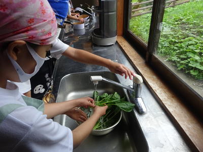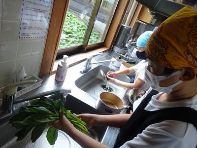 今日の主役はホウレンソウです。根本も丁寧に洗って準備OK!