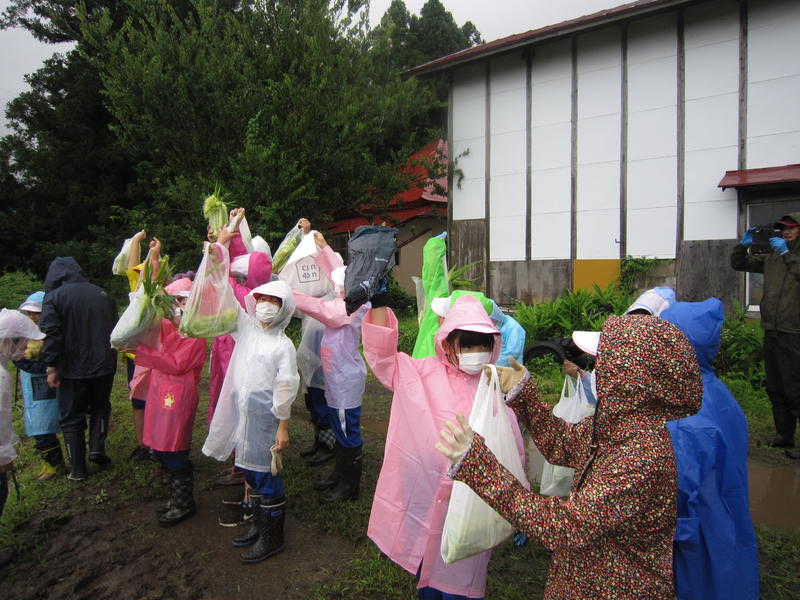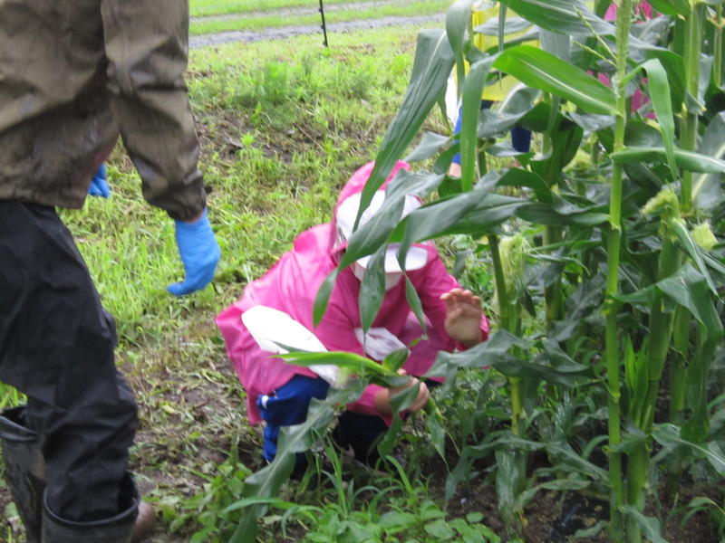 あいにくの雨でしたが、子どもたちは、熱心にヤングコーンを取っていました。何といっても、おいしく食べられるのですから。来るときには空っぽだった子どもたちの袋には、たくさんのヤングコーン!収穫したものは、4~5分ゆでて、しょうゆなどをつけて食べるとおいしいそうです。今日の晩ご飯が楽しみですね。