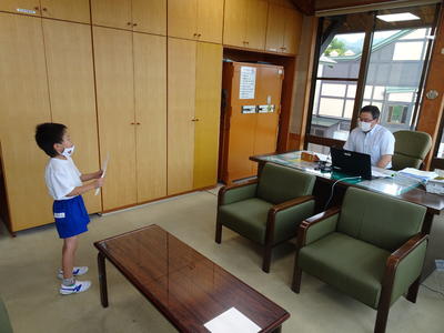 「上手く言えるかな?」校長室前で待つ1年生の心の中はドキドキ・わくわく。