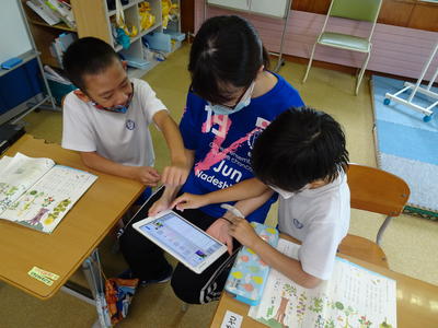 おおぞら学級では,国語科でタブレットを使い,夏の花や生き物をたくさん調べました。