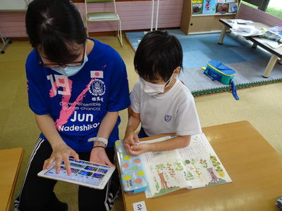 1年生は,休み時間に「数え歌」「五十音の遊び歌」の暗唱を校長先生に聞いてもらいました。