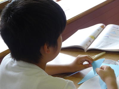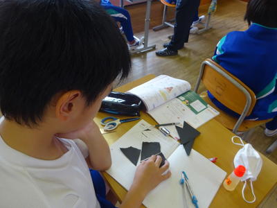 図形の学習でした。三角形の角の秘密を探ります。