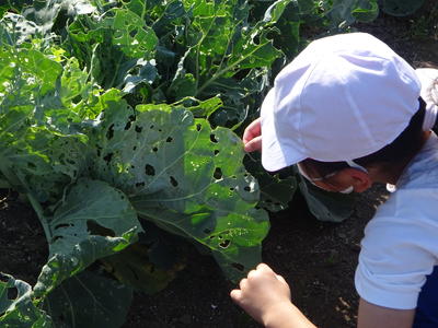 あぁ、理科の授業で観察をする「モンシロチョウ」の卵と青虫をさがしていたのですね!