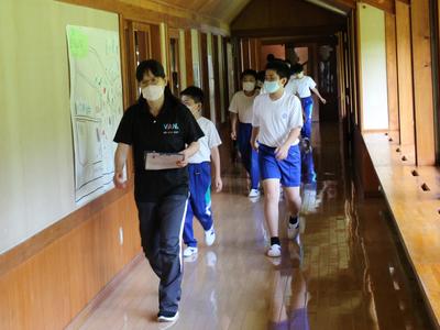 大切なのは、落ち着いて行動すること、放送や指示をしっかりと聞くことです。