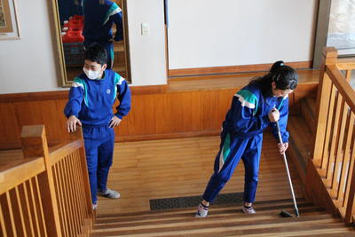 朝のボランティア活動等、6年生から学校のことを色々教えてもらいました。