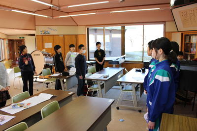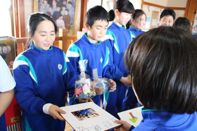 3月3日(火)の給食の時、下級生から6年生一人ひとりへ「ペン立て」と「色紙」を送りました。
