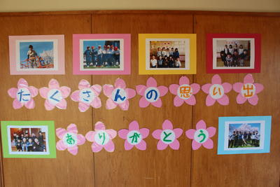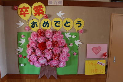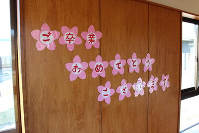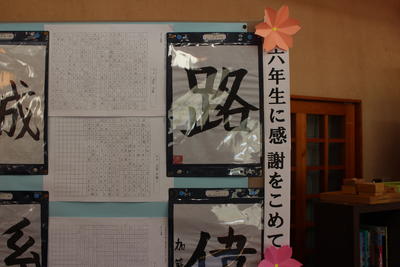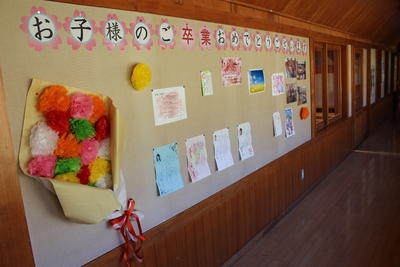 今日の式に参加しない1~5年生がつくった掲示物やメッセージもあります。