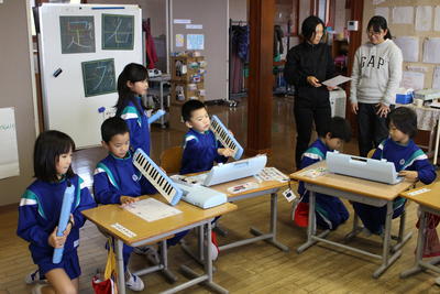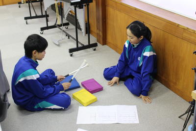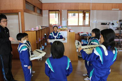 鼓笛隊の新メンバーが決定し、前パートの担当が新パートの子どもたちに教えていきます。