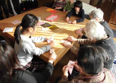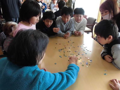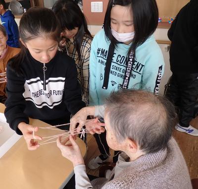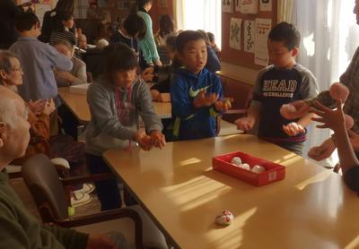 あいさつの後,おじいさん・あばあさん達とあやとりやおはじきなどを一緒にして楽んでいただきました。