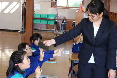 最後に,子ども達からメッセージカードをお渡ししました。施設の方々からも,子ども達にお礼のノートと鉛筆を頂きました。