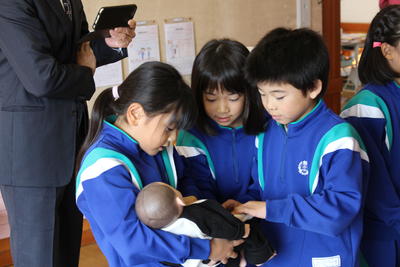 ③自分たちが生まれたばかりの頃の赤ちゃんの人形を抱いて、お母さんの気持ちを想像しました。