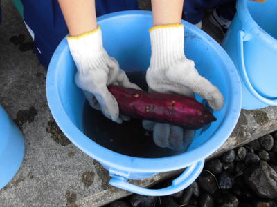 今週の水曜日、1・2年生とわかくさ学級の子どもたちでさつまいもをきれいに洗いました。