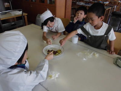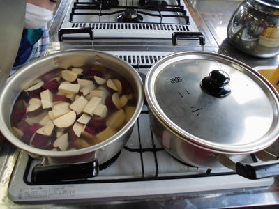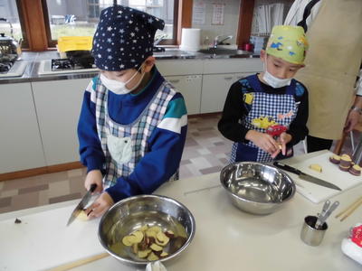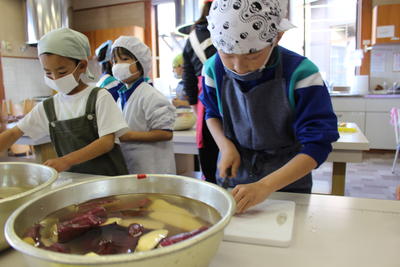 包丁を上手に使ってさつまいもを切る男の子が多いのに驚きました。