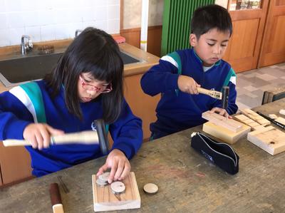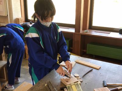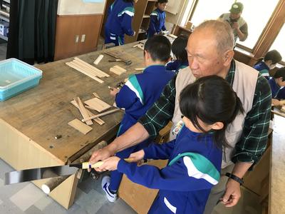 その後,子どもたちは,作りたいものに合わせて木を選び,木の温もりを感じながら作品づくりに取り組みました。