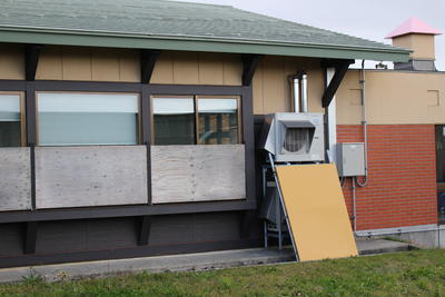 先日、校舎も屋根の雪が落ちてくるところには、用務員さんが囲いをつけてくれました。