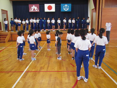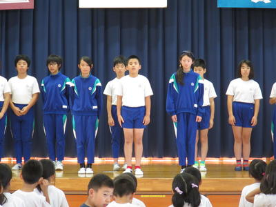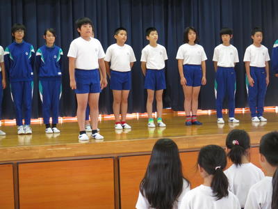 朝の時間、磐梯町小学校水泳交歓会の「壮行会」を開催しました。